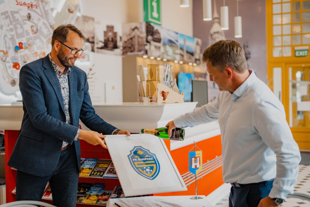 Šumperský fotbal tak po 80 letech v místech, kde po válce znovuobnovovali nadšenci činnosti fotbalového oddílu pod hlavičkou SK Šumperk. Na slavnostní událost pozval náš tým také zástupce stávajících partnerů, účasten byl například starosta města Mirek Adámek, šéf šumperské nemocnice Martin Polach, ale i autor nového loga klubu Martin Král. Důstojná a povedená akce v krásných prostorách šumperského infocentra.